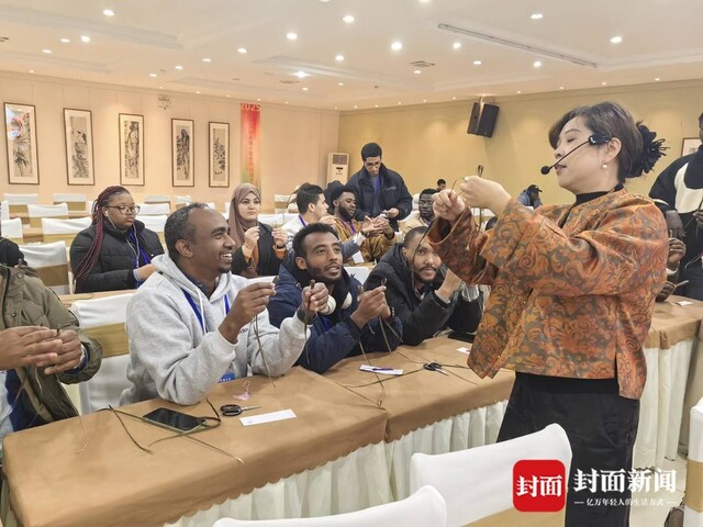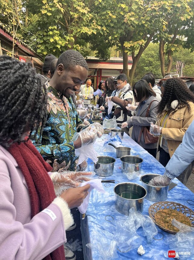 告别了前一日的科技硬核,非洲留学生们转身投入非遗的怀抱,在指尖互动中感受四川人文的独特魅力。