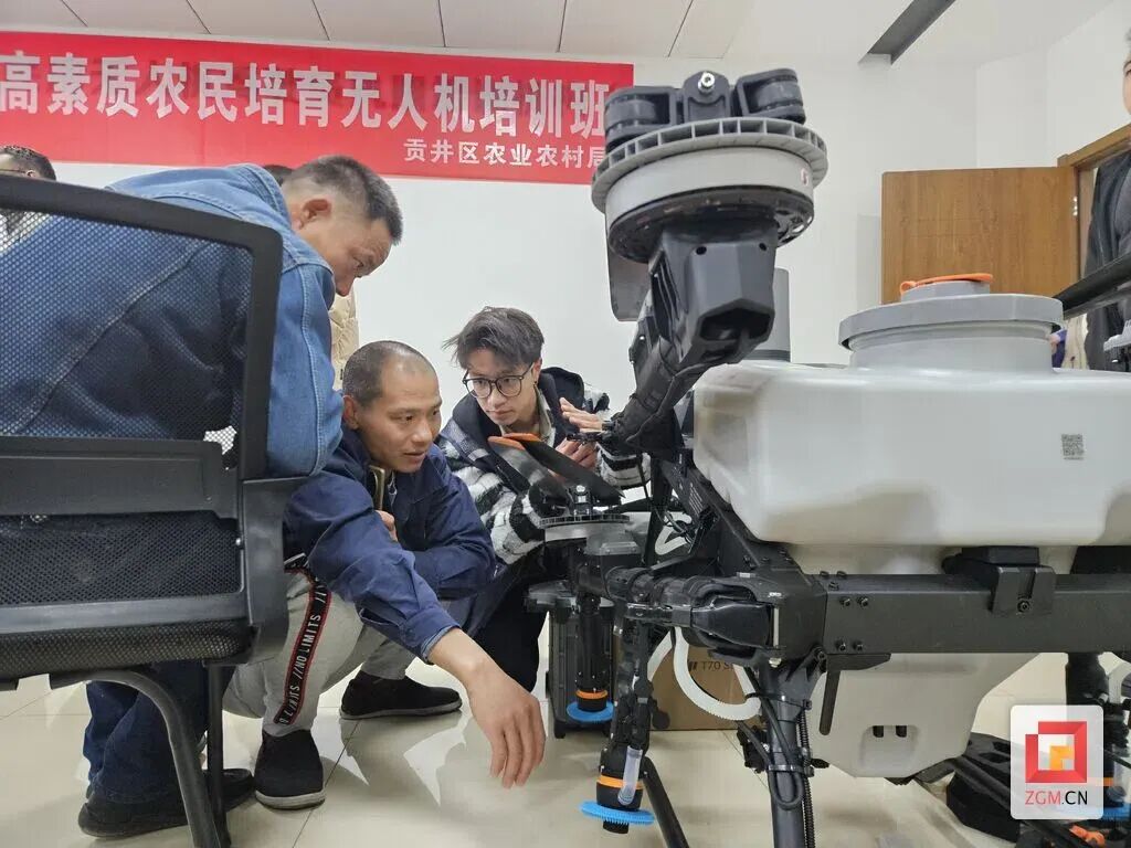 据了解,在为期一周的无人机培训中,来自贡井区家庭农场联盟、集体合作社等行业的学员们,将进行理论学习和实操练习,快速掌握这门“新农技”。模拟飞行训练后,几位学员围着无人机看了又看,详细了解各部件的功能、用法。“培训结束后,我打算正式考个证,以后可以用无人机来播种、施肥。”在桥头镇跳墩村经营着一家农场的胡进锋说:“这样可以节约很多人力,很方便。”