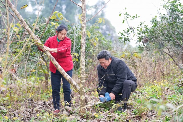 不远处,代万琼在“老师”张贤义的指导下使用电锯。