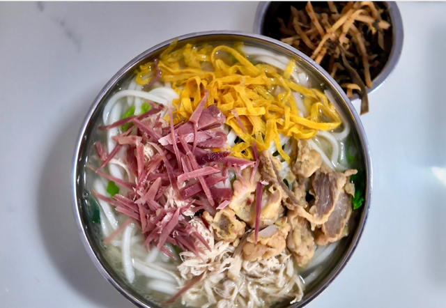 寒冬里最治愈的莫过于一碗热气腾腾的鸡火丝饵块,软糯饵块裹着鲜香鸡丝、火腿丝,浇上醇厚骨汤,撒上葱花、胡椒,一口下去暖汤入喉,鲜香直达心底,浑身都透着暖意,这才是会理冬天的正确打开方式。
