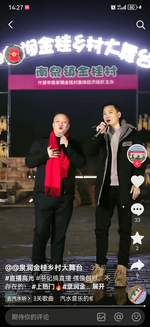 远在他乡的游子通过直播镜头看到了家乡的变化,听到了熟悉的乡音,金桂村的“泉润金桂乡村大舞台”正在编织一条连接传统与现代、乡村与城市的情感纽带。