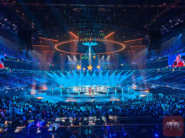 4000盏灯光如星河般交织闪烁,80组机械装置与360组单点数控系统精密协作,升降矩阵、威亚数控与全息影像交相辉映,构建出层次丰富的立体空间,244束光随之起伏律动,为观众带来全方位的感官盛宴。