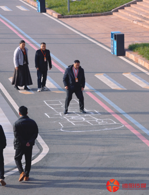 视频中的学校是德阳市鸿鹄高级中学,位于中江县。只见两名同学在校园内用粉笔手绘“跳房子”游戏,起初只是两人的小创意,很快便点燃了校园热情。接下来路过的同学、老师、后勤人员纷纷忍不住玩了起来,大家在跳跃中重拾久违的童真,让人回忆上涌。这场随性又鲜活的“小插曲”,成为了冬日校园里最温暖的风景。