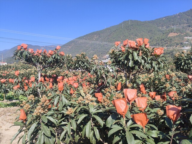 高丰村枇杷已经套袋,最早将于明年元旦节上市。