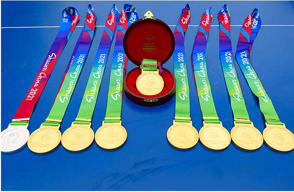 随后2021年,在陕西举行的全国残特奥会上,黄树阳带领四名特奥羽毛球队员,斩获6金1银1铜。