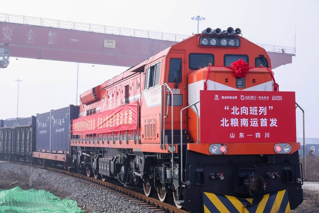此前,川鲁两地物流95%以上依靠公路运输,长期面临运价波动频繁、组织程度不高等问题。2025年7月22日,“北向班列”正式开通,充分发挥山东省环渤海港口群的区位优势,释放四川省广阔市场的内需潜力,推动两省资源要素“双向奔赴”,促进“内陆生产、沿海输出”“沿海研发、内陆转化”的跨区域协作模式升级。