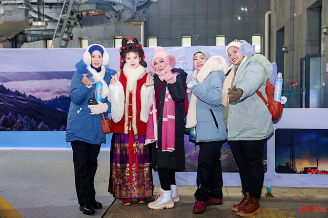 商户熊女士也正忙着售卖帽子、围巾、手套等保暖用品。“今年是我第一年来这里做生意。”她笑着说,“朋友说这里风景好,客流量大,确实如此。”