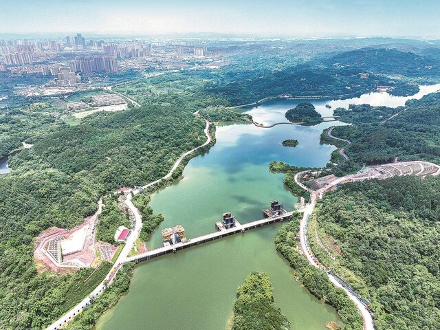 成渝中线高铁玄天湖大桥建设现场。 新华社记者 唐奕 摄