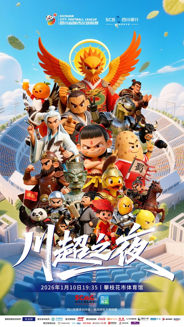 全体“川超”球迷注意!现请查收一条重要通知:1月10日19:35,攀枝花有大事发生,请将目光提前锁定“川超之夜”↓