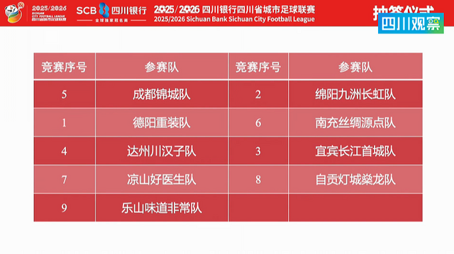 “川超之夜”重磅环节开启!赛事抽签仪式现场举行,下半程对战赛程正式公布。