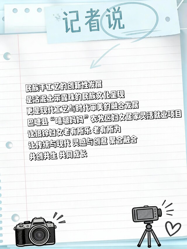 2025年9月,“嘻啵妈妈”工艺品牌正式进驻杭州“华藏”文化数字版权交易平台,首批上架5000份手工文创产品,交易额达到99万元,这其中就有四郎翁姆与妈妈学员们贡献的一份力。民族手工艺的创新性发展,是沾泥土带露珠的民族文化呈现,更是现代工艺与时代审美的融合发展,巴塘县“嘻啵妈妈”农牧区妇女居家灵活就业项目,让银龄妇女老有所乐、老有所为,让传统与现代、灵感与创意聚合融合,共创共生,共同成长。
