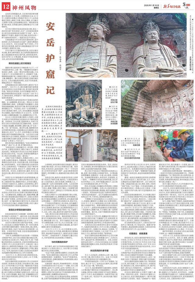 2025年12月1日,89岁的唐承义去世。这位自20世纪80年代起,就收集安岳石窟基础资料,推动保护发展的老人,被誉为安岳石窟的“活字典”。在他的培养下,本地保护力量正在壮大,守护优秀传统文化的故事正不断续写。