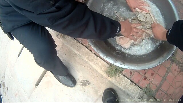 救人!刻不容缓!民警立即找来毛巾用水浸湿捂住口鼻,并携带灭火器准备上楼救人。由于楼内浓烟充斥,能见度极低,民辅警连续两次尝试上楼搜救均被浓烟逼退。