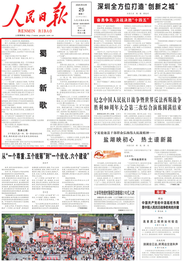 2025年8月25日,《人民日报》在头版头条刊发了长篇通讯《蜀道新歌》