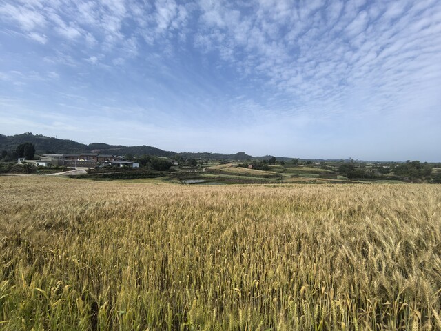 春日的贡井,桥头镇团结村和增产村的小麦示范基地里,一片生机勃勃。经过数月的精心培育,嫩绿的麦苗生长健壮,随风摇曳间,满田清香扑面而来,构成了一幅壮美的田园画卷。这片由市区共建的小麦全程机械化种植示范地,采用“麦玉”轮作模式,全程推行机械化、智能化种植,让田地利用率实现最大化。
