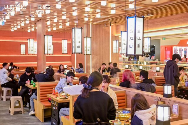 夜幕降临,龙泉驿新城吾悦广场内烟火升腾,焰江山、麦记牛奶、豪客来牛排等门店人流如织,市民们在热气腾腾的美食与轻松惬意的氛围中,尽享夜间消费的独特魅力。