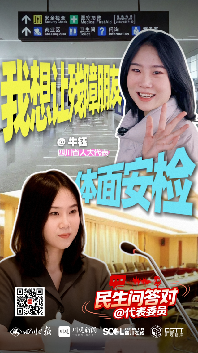 时间回到一年前的2025年1月22日,牛钰将残障朋友的心声带到了省十四届人大四次会议分组审议会场。“希望在保障安全的前提下,让残障朋友安检更方便、更体面。”牛钰对此提出了具体改进办法。听了牛钰的发言,同为四川省人大代表的绵阳市长李云当场给予回应。会后,机场方面与牛钰取得联系,改进工作随即启动。