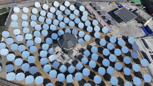 一键按下,144个定日镜缓缓转动,阳光被集中反射到聚光反射塔,经过化学反应,氢气从水里被分解出来,像科幻电影中的场景。
