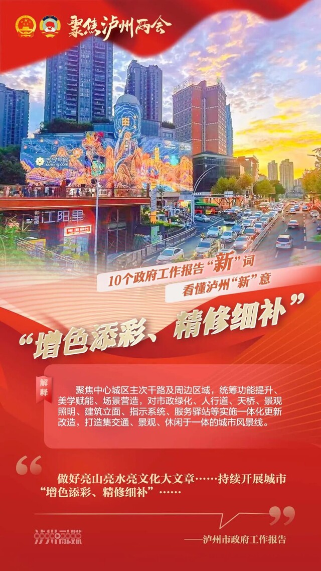 在今年泸州市政府工作报告中,出现了不少“新”词。无论是借鉴“区区合一”改革经验,深入企业一线的“进解促”,还是城市更新中“增色添彩、精修细补”的精细化治理,或是全民可参与的消费“第二现场”和“十二悦”消费主题……这些鲜活的表述,让我们从中看见泸州在高质量发展道路上的务实行动与创新智慧。