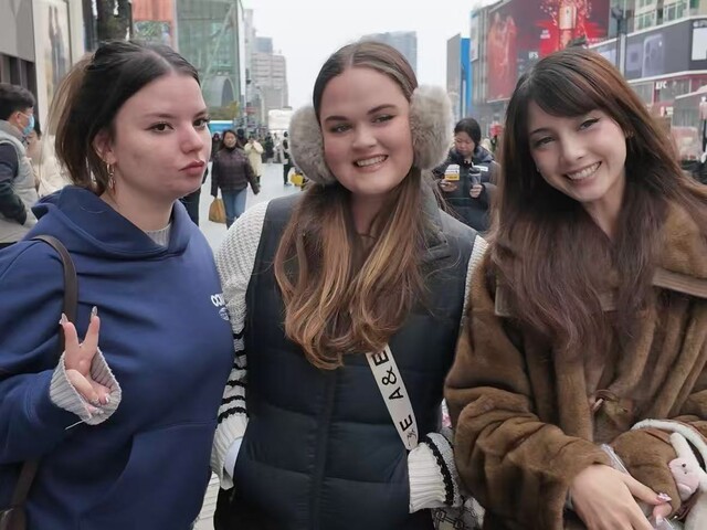▲三位澳大利亚女生在成都旅游(从右到左依次为考特尼、泰拉、婕斯)