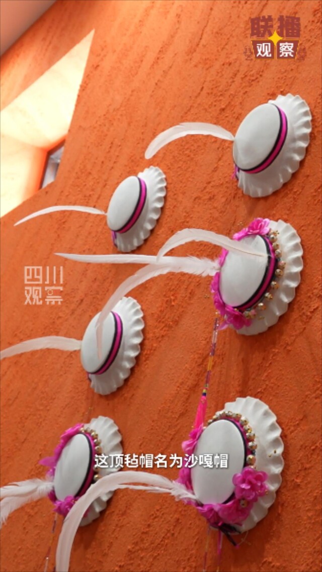 这顶毡帽名为“沙嘎帽”,更是一顶藏着民族记忆的帽子——相传,白马藏人祖先曾遭受敌兵追杀,危急时刻锦鸡啼鸣预警,才让族人幸免于难。从此,白羽毛便成了勇敢与纯洁的象征,稳稳立在每一顶沙嘎帽之上。