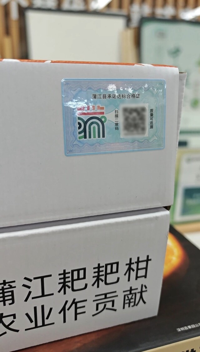 据了解,《农产品质量安全承诺达标合格证管理办法》将在2月1日起正式施行,对收购的农产品分装后进行销售的需要开具承诺达标合格证。记者注意到,在部分销售的蒲江耙耙柑包装盒上,已贴有“蒲江县承诺达标合格证标志”。“只要扫码就能看到耙耙柑的产地、生产厂商和联系人等信息,从源头上保障消费者的知情权和选择权。”蒲江农民专业联合社市场部工作人员邓家惠告诉记者。