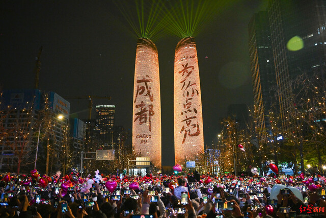 ▲天府双塔灯光秀 摄影:王勤