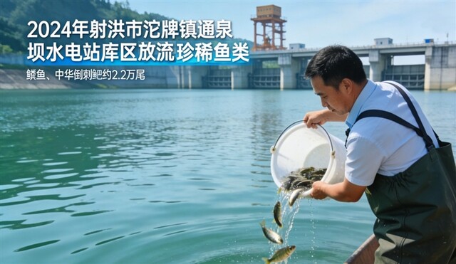 2024年,射洪市在沱牌镇通泉坝水电站库区放流鳜鱼、中华倒刺鲃等珍稀鱼类约2.2万尾。