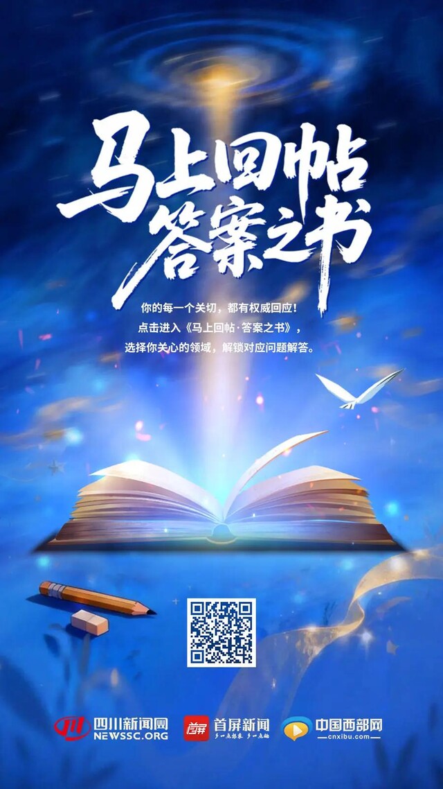 为切实回应百姓关切,四川新闻网-首屏新闻特别推出《马上回帖・答案之书》H5,让你的每一份民生期待,都有专属解答!教育保障、医疗报销、住房改善、消费补贴等热门民生领域全覆盖,无论是中小学春秋假、课后服务、转学升学等热门问题,还是老旧小区改造、育儿补贴补领、25天婚假新规落实等社会热点,都有官方解答,直白好懂不绕弯!还能留言提诉求,让你的关切被听见、有回应!