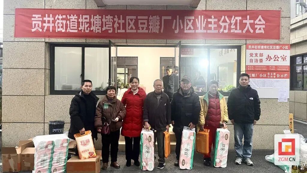 当天,豆瓣厂小区党支部办公室的空地上摆满了成袋的大米、成箱的食用油和卫生纸。自治委员会的成员们忙着核对名单、分发物资。现场热闹却有序,笑声不断。“去年第一次分红时,大家确实很惊喜。”自治委员会负责人告诉记者,当时很多居民都不敢相信,居住的小区实现了自治管理,还能有结余给大家分东西。