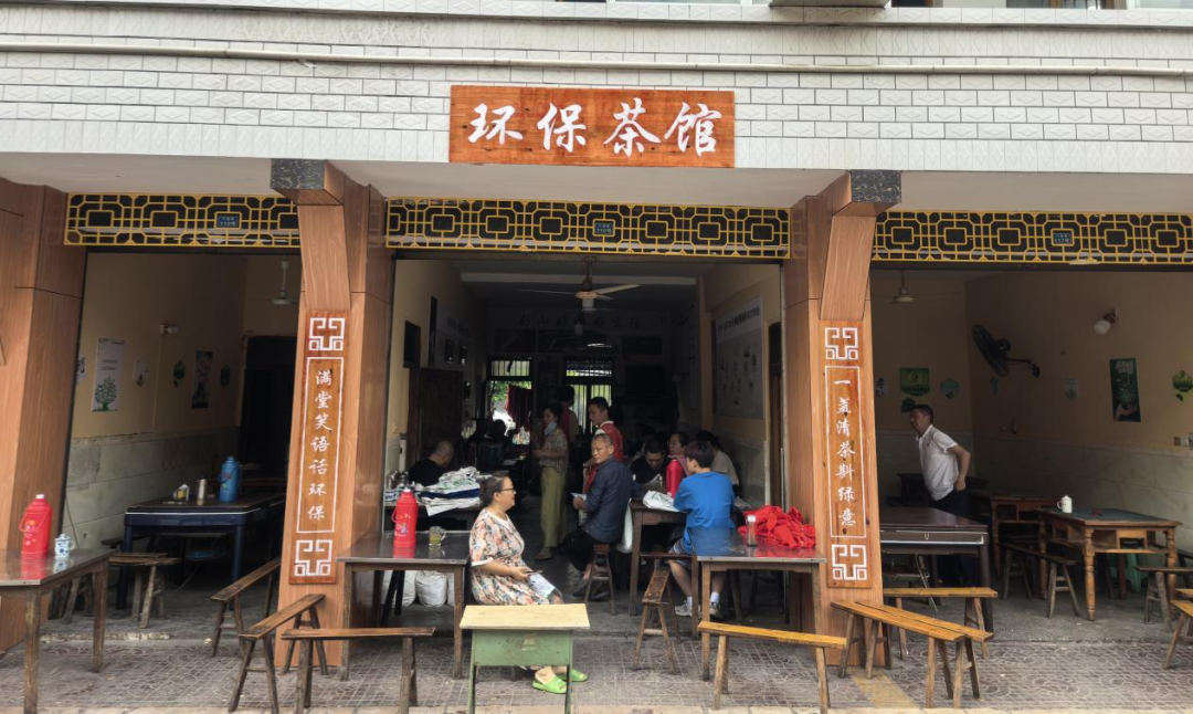 这家茶馆,不只是喝茶的地方,墙上贴着环保知识,墙角摆着分类垃圾桶,还能用旧衣服换礼品。它像是贡井区“十四五”生态环境治理的一个生动注脚——环保,不再只是文件里的词,它钻进了茶馆、飞上了天空、融进了河沟、扎进了土地,变成了老百姓看得见、闻得到、摸得着的舒心日子。