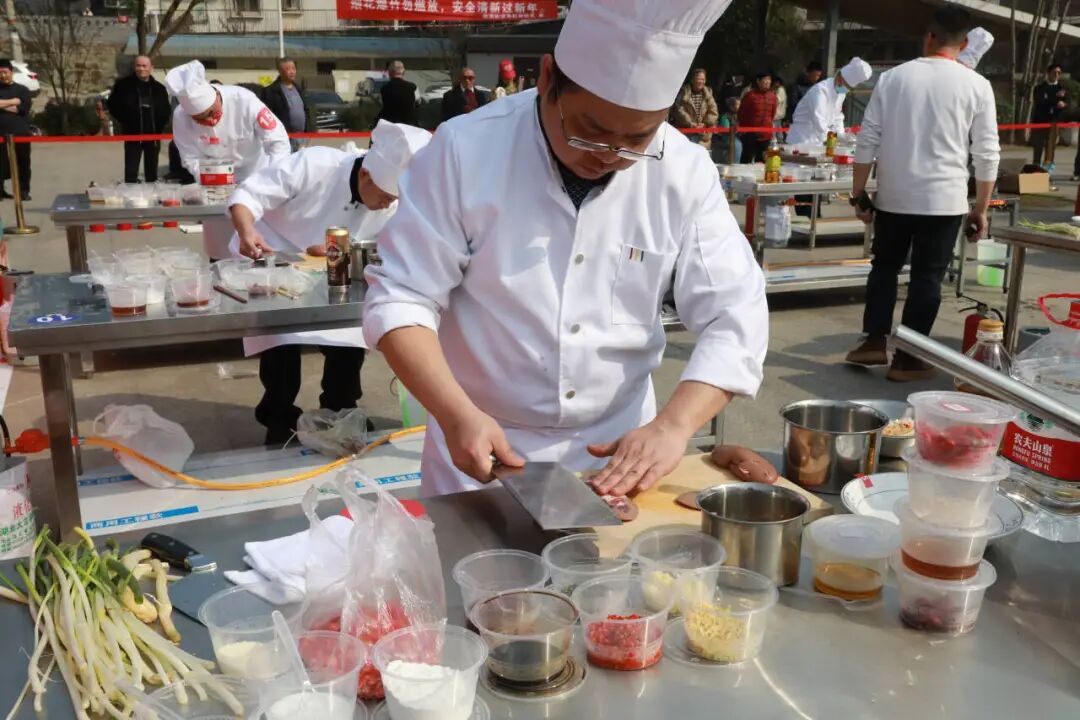 “烟火江湖菜挑战赛”更是吸睛。贡井餐饮大厨现场比拼手艺,锅铲翻飞、香气四溢,尤其是那道冷吃兔,麻辣鲜香,试吃的群众排起了小长队,纷纷竖起大拇指。