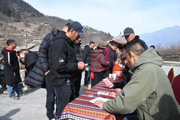 2月4日,九寨沟县漳扎镇中查村举行2025年度集体经济分红大会,全村村民齐聚马帮广场,共领190.4万元分红。