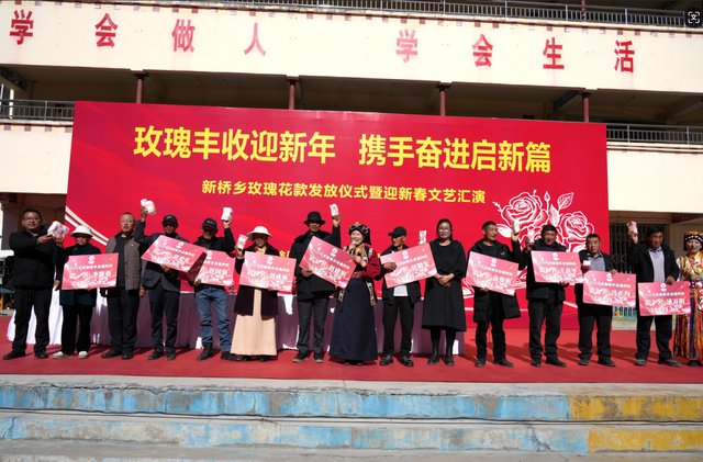 2月6日,小金县新桥乡举办玫瑰花款发放仪式暨迎新春文艺汇演,全乡玫瑰种植户与干部群众欢聚一堂,共庆丰收、喜迎新春。现场工作人员精准核对信息,将780余万元玫瑰花款有序发放到种植户手中,农户们满脸喜悦,纷纷表示将继续扩大种植规模。
