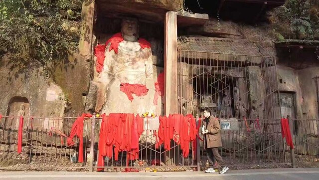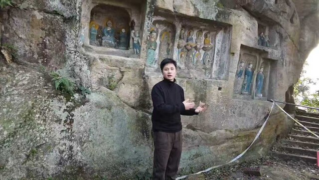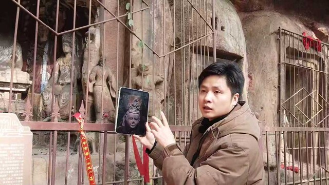 这个疑问将他带回家乡四川。返川后,他首站前往蒲江飞仙阁——一处保护相对集中的唐代摩崖造像群。杨翻指出,即便如飞仙阁这般有人管理的文物点,也曾发生佛头被盗事件。“这尊佛像的头像在2003年被盗,2014年才得以追回,现藏于成都博物馆。文物保护工作依然任重道远。”
