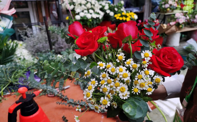 为了让鲜花新鲜实惠,张菲每天清晨五六点就去花卉市场挑货、剪枝、打理、换水,忙到深夜是常态。“鲜花销售损耗大、利润薄,每一枝都要精打细算,账本上记的不只是进价和售价,还有顾客的喜好、节日的需求、邻里的信任。”她笑着说,刚开店时客源不多,靠着朋友圈分享、邻里口口相传、节日主题搭配,慢慢积累了大批回头客。