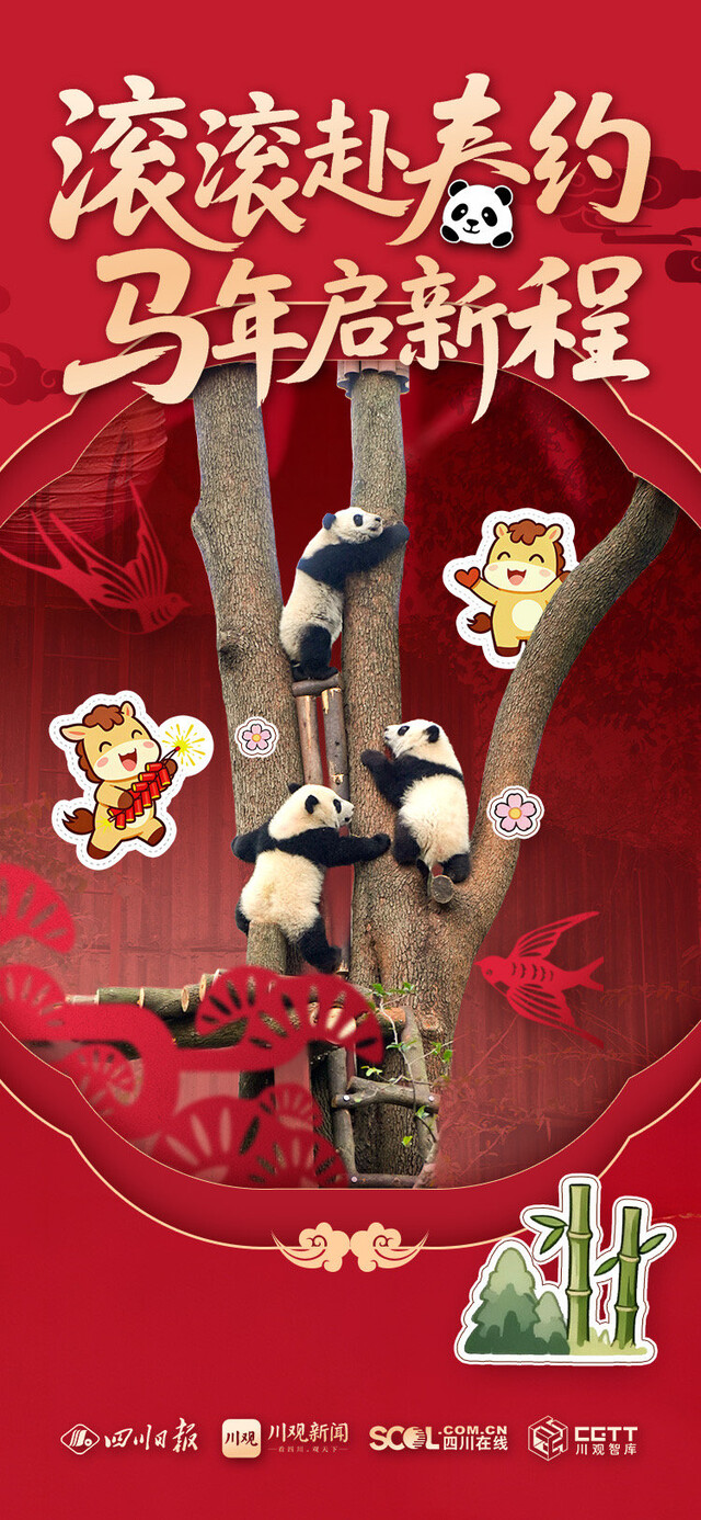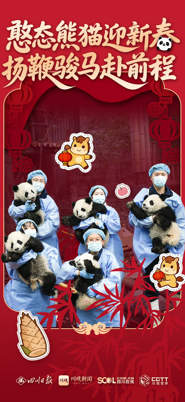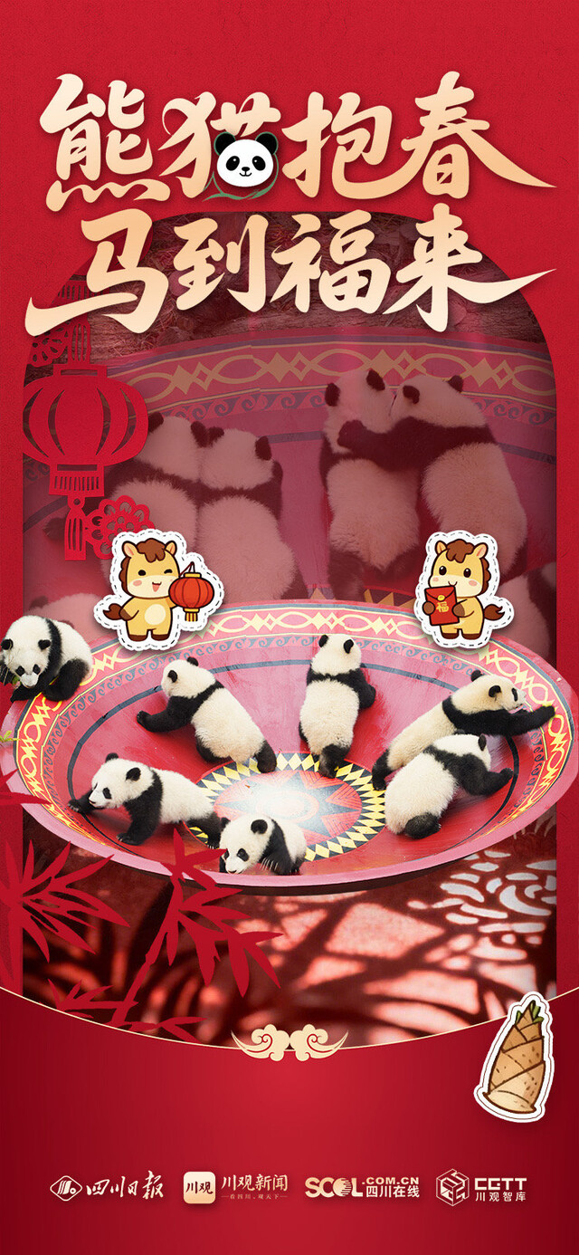 “熊猫抱春,马到福来”“萌宝贺岁,马年顺遂”“熊猫送暖,一马当先”……当圆滚滚的“团子”遇上喜庆吉祥的祝福语,会碰撞出怎样萌动人心的画面?