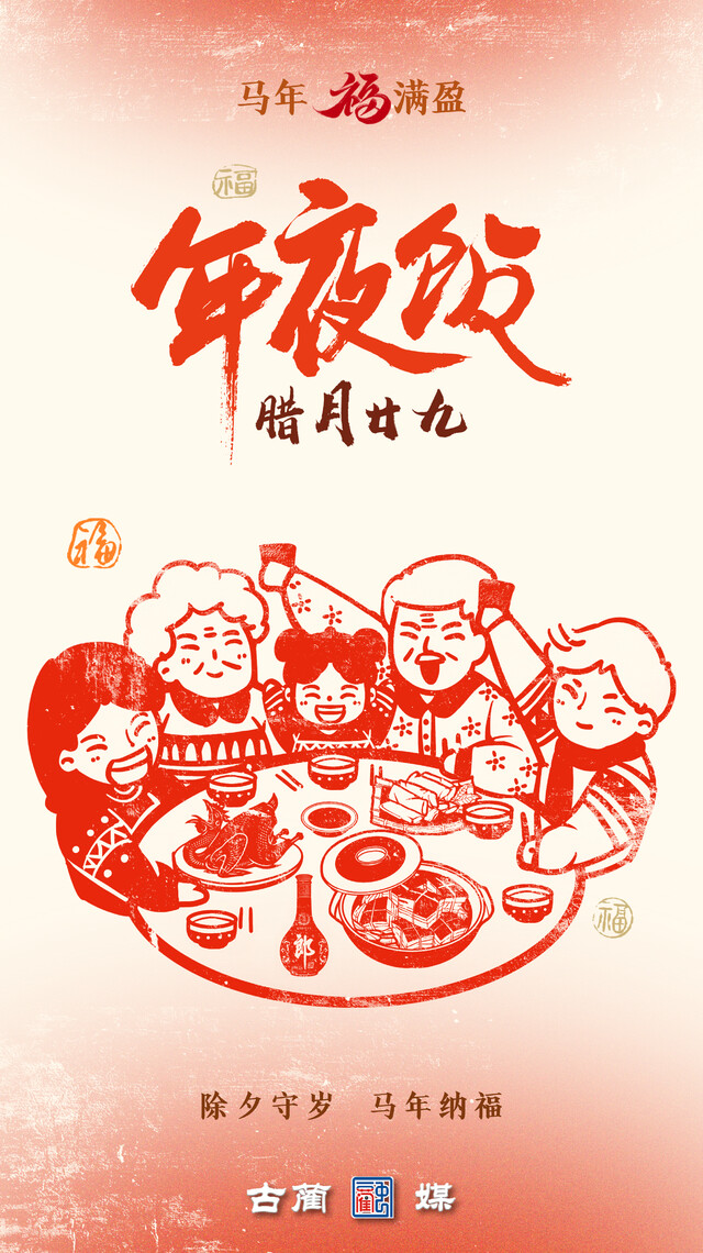 年,是中华文化的浓缩,是中国人血脉里抹不去的心结。中国年俗,有说不完的故事,道不尽的风情。春节,这场一年中最隆重、最热烈的节日仪式,曾藏在一张窗花、一副春联、一桌年夜饭里。岁月流转,有些年俗渐渐淡出日常,但那份对年的期盼与郑重,从未走远。今年新春,古蔺融媒以剪纸为笔,以红纸为墨,用古老而质朴的民间技艺,绘制了这组年俗系列海报。从春联挂门到迎灶纳福,从走亲访友到送穷迎新——我们用镂空的影、层叠的光,把那些被时光稀释的仪式感,重新描浓。让我们一起,在过年的气氛里,找回传统文化里那口温热绵长的“年味儿”。