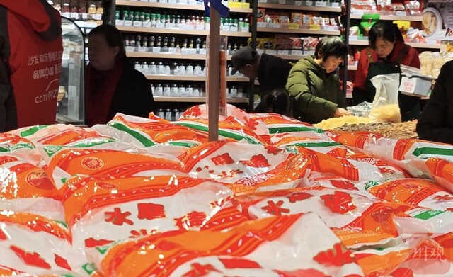 春节前,市民选购糯米粉回家包汤圆。