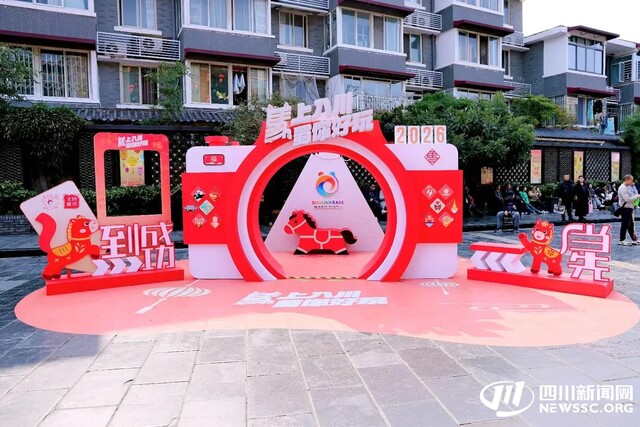 2月12日,由四川省文化和旅游厅主办的“马上入川·蜀你好玩”2026年漫游四川创意营(新春季)线下打卡装置正式落地成都天府机场、双流机场、成都东客站、春熙路、宽窄巷子、东郊记忆、熊猫基地等城市热门地标,成为巴蜀大地新春里的一道亮眼风景线。13日,记者实地走访春熙路、宽窄巷子、成都东客站三大核心点位,沉浸式感受打卡装置的独特魅力,与游客面对面交流,解锁这场文旅盛宴的多元玩法。