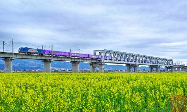 客运列车在穿行油菜花花海。