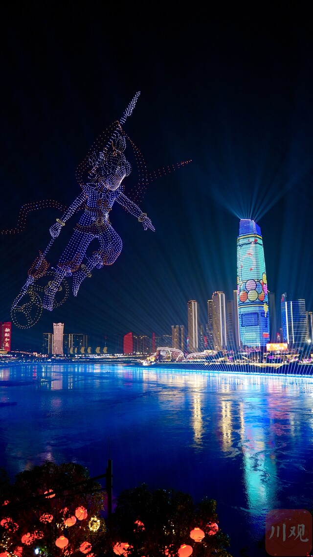 此外,2月16日至3月3日晚,宜宾三江六岸还将上演精彩光影大秀。以无人机编队表演为载体,融合长江文化、酒都风情等本土元素,延续春晚分会场舞美灯光效果,打造春晚同款声光电城市光影秀。