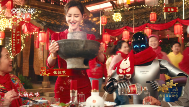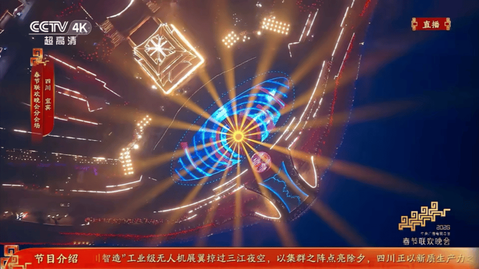 工业级无人机腾空而起,以一场名为“长江首城·骐骥驰骋”的光影大秀,拉开2026年总台春晚宜宾分会场迎新序幕”。机器狗、机器人、AI特效生成的熊猫梦幻联动,不仅是一场视觉盛宴,更是“四川智造”在“十四五”期间科技创新实力的一次精彩亮相。