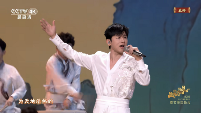 多次登上春晚舞台的川籍实力唱将张杰,此番带来全新原创作品《驭风歌》,携手唢呐演奏家刘雯雯、京剧演员周恩旭完成跨界舞台演绎。作品曲风铿锵有力,张杰以其标志性的高亢嘹亮嗓音,诠释出 “驭风而行、逐光向上” 的壮志豪情,完美契合马年昂扬奋进的精神风貌,点燃了全场观众的新春热情。