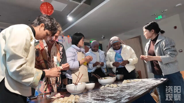 案板旁,还有不少人围在一起包饺子,彼此搭把手、聊几句,原本陌生的人,渐渐熟络起来。“在这里感受很好,大家聚在一起烹饪、一起吃饭,看电视,能够相互交流增进感情。”来自法国的友人 Celia说道。