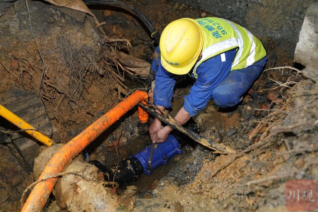 停水的紧急工单一来,成都市自来水公司城东管网所的当值员工很快赶到现场。只一眼,有着20多年经验的林兵就看出活儿不轻松:“水都漫到马路上了,光找漏水点都得花不少时间。”