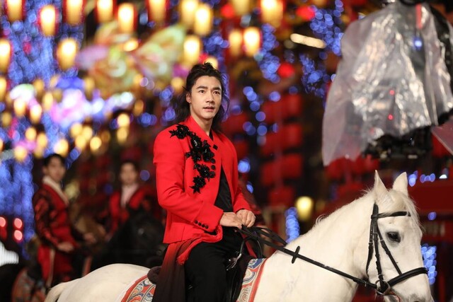 宜宾分会场的开场引子中,一袭红衣劲装的川籍演员此沙率领骑手们从茶马古道疾驰而出,与天上的AI“飞马”一道,穿蜀南竹海,过李庄古镇,在长江大桥上与现代智轨并肩驰骋,从五粮液501白酒文化圣地奔向合江门……