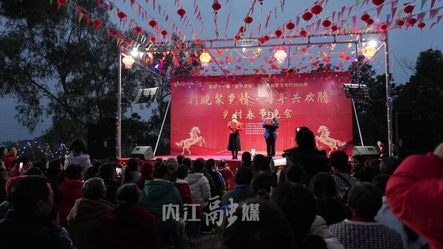 2月17日,农历正月初一。随着夜幕降临,内江市资中县公民镇盘龙寺村的村民们扶老携幼来到团路山上,等候马年村晚上演。