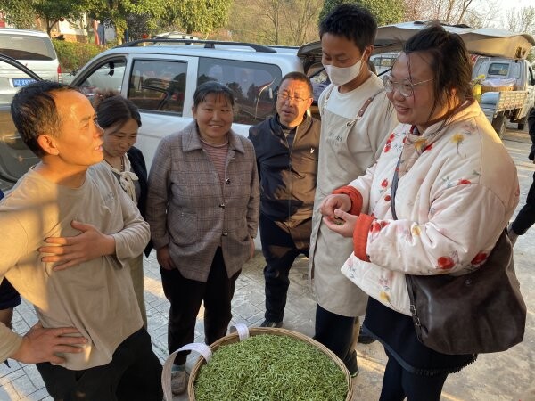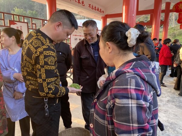 作为“万年集市”的负责人,张婧妍穿梭在集市中,一边协调秩序,一边帮着村民对接茶商、清点账目,忙得不亦乐乎。“万年集市成立至今已经4年了,最开始就是想给村民们搭建一个便捷的卖茶平台,让大家足不出村就能把茶叶卖出去,不用再跑远路、担风险。”张婧妍介绍道,4年来,她一直牵头组织村里的茶农、茶叶种植大户,对接周边的茶商,打通茶叶销售的“最后一公里”。如今,集市的规模越来越大,名气也越来越响,依托这个平台,村民们的茶叶销量稳步提升,最多的时候一年能收入10余万元,小小一片春茶,已然成为村民们增收致富的“黄金叶”“致富叶”。