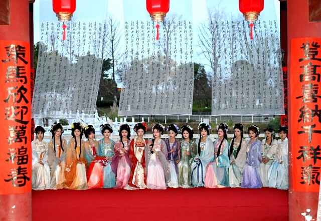 缓缓行进的十二花神巡游队伍衣袂飘飘、古韵盎然,身着各式古典服饰的花神们手持花灯,沿山道徐徐前行,沿途与游客挥手互动、打卡合影,成为山间最吸睛的风景线。心愿树、祈福墙前,市民们认真写下新年愿望,一条条红丝带随风飘扬,承载着大家对美好生活的朴素向往。